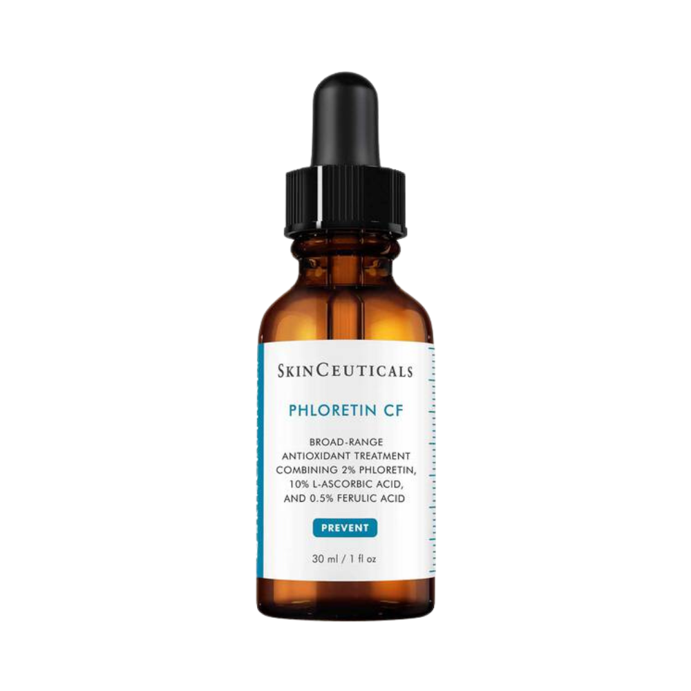 Phloretin CF features a patented synergistic combination of 2% phloretin, 10% pure vitamin C (l-ascorbic acid), and 0.5% ferulic acid for enhanced protection against atmospheric skin aging – environmental damage and premature signs of aging caused by free radicals from UVA/UVB, infrared radiation (IRA), and ozone pollution (O3). In addition to antioxidant protective benefits, Phloretin CF improves the appearance of discoloration, fine lines, and uneven skin tone.